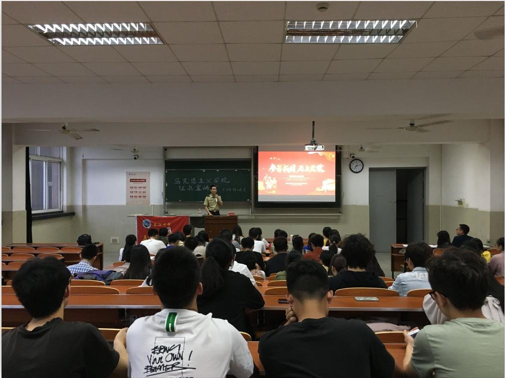 韩王戴贤从国防的意义、入伍“三笔账”、老员工参军优惠政策、入伍条件和流程等方面对老员工应征入伍进行了全面解读。谈到参军入伍,韩王戴贤结合自身经历讲述了参军所带来的精神上的充实、心智上的成熟和能力上的提升。“当兵一阵子,受益一辈子”,他动员同学们携笔从戎,踊跃参军。