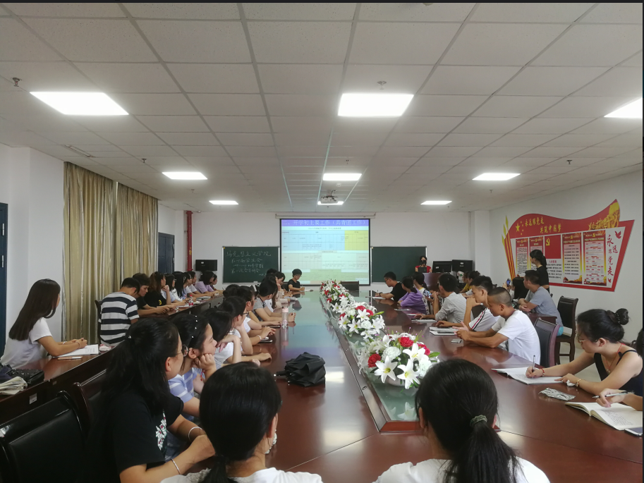 会议开始,辅导员张老师先简单地介绍了开学初共青团主要工作,主要包括员工会和班级组织架构的调整、金秋歌会等,其次说明了开学初员工事务工作,最为关键的是迎新及军训志愿服务工作;随后,马小佼副书记发表讲话,她首先分享自己的工作经历,表达对于来到马院工作的喜悦,其次她提出了“两讲三有”,即讲学习、讲政治、有重点、有方法、有特长。十五个字涵盖了她对员工干部们的真切的期许,希望员工干部们能澎湃的激情。
