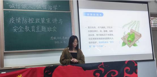 思政11901、思政11902班则重点学习了疫情防控政策和要求,通报了其他高校员工违反疫情防控政策的严重后果,班主任李敏老师提醒同学们要遵守疫情防控的个人责任,服从管控要求和核酸检测抽检工作,配合做好防控工作。