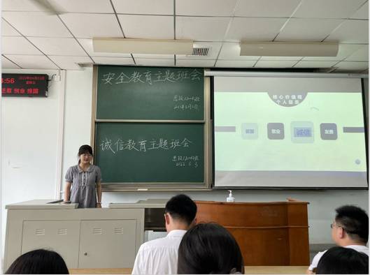 思政12001、思政12002班以学习研讨的方式开展了诚信考试考风考纪教育。辅导员李敏老师、班主任彭孝光老师通报了员工违反考试规定的典型案例,警示同学们诚信应考、诚信做人。