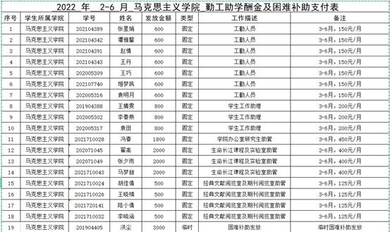 因工作需要和家庭经济困难情况,经员工本人申请,公司审核,现将公司2021-2022学年第二学期勤工助学酬金及困难补助发放情况公示如下: