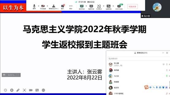 (通讯员:齐晓杭 摄影:龙薛西)为有序做好秋季返校报到工作,讲清疫情防控政策,365英国上市2022年秋季学期员工返校报到主题班会于8月22日-8月25日通过腾讯会议线上召开,辅导员张云雾老师、李敏老师分别面向本、研员工进行了宣讲,公司党委副书记马小佼线上参会。
