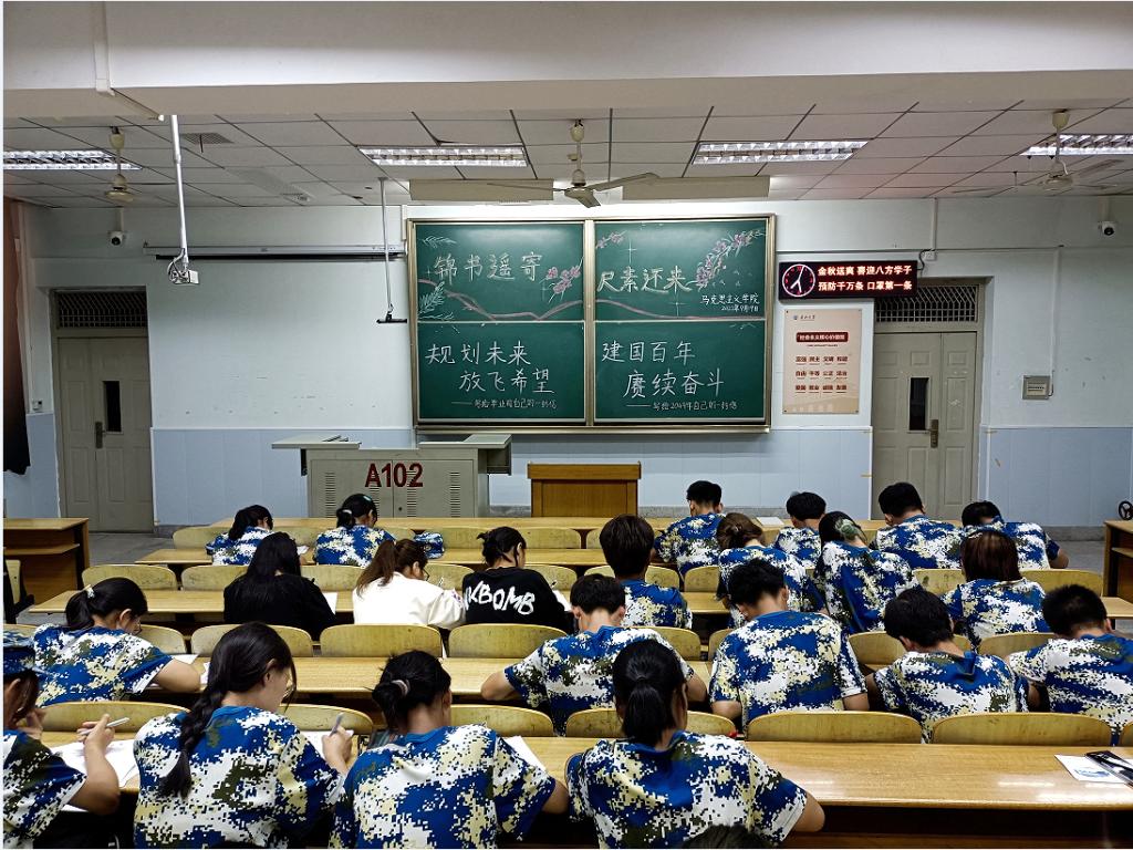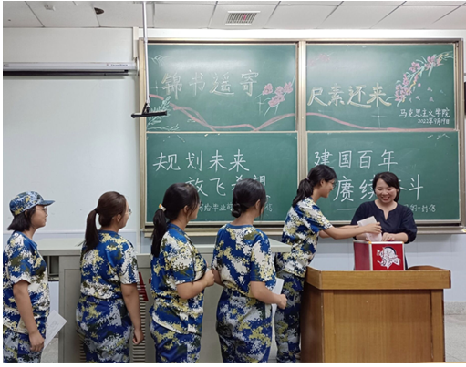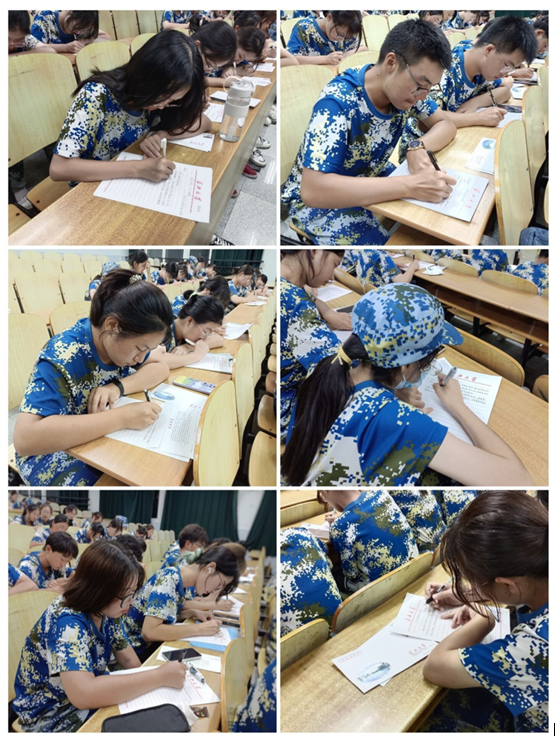 活动伊始,张老师对22级新生们进行了亲切的问候并详细介绍了本次书信活动,让同学们给毕业前以及建国百年之时的自己分别写两封信,鼓励同学们珍惜当下,志存高远,向往未来!新生们深受感触,拿到信纸后,大家纷纷凝神静思,动笔写下自己对未来的期许与向往,脸上无一不洋溢着对老员工活的憧憬。在写信给2049年的自己时,大家都对祖国的未来表达了充足的信心并希望未来的自己也能为祖国的建设事业贡献一份力量。