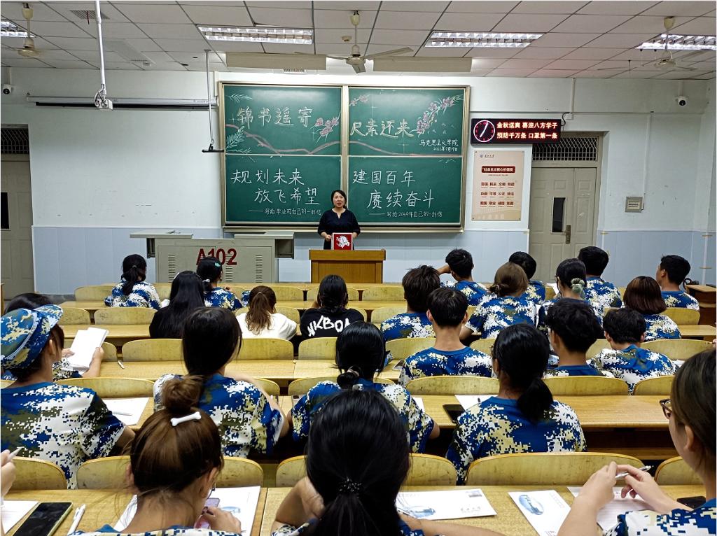 (通讯员:何利娅 摄影:周芯如)为促进2022级新生立足当下、眼望星辰,努力成长为堪当民族复兴重任的时代新青年,9月19日晚7时365英国上市于13教A102室举行“锦书遥寄,尺素还来”时光邮筒系列活动——“规划未来,放飞理想”写给毕业前自己的一封信、“建国百年,賡续奋斗”写给2049年自己的一封信。本次活动由辅导员张云雾主持,全体22级本科生到场参加。