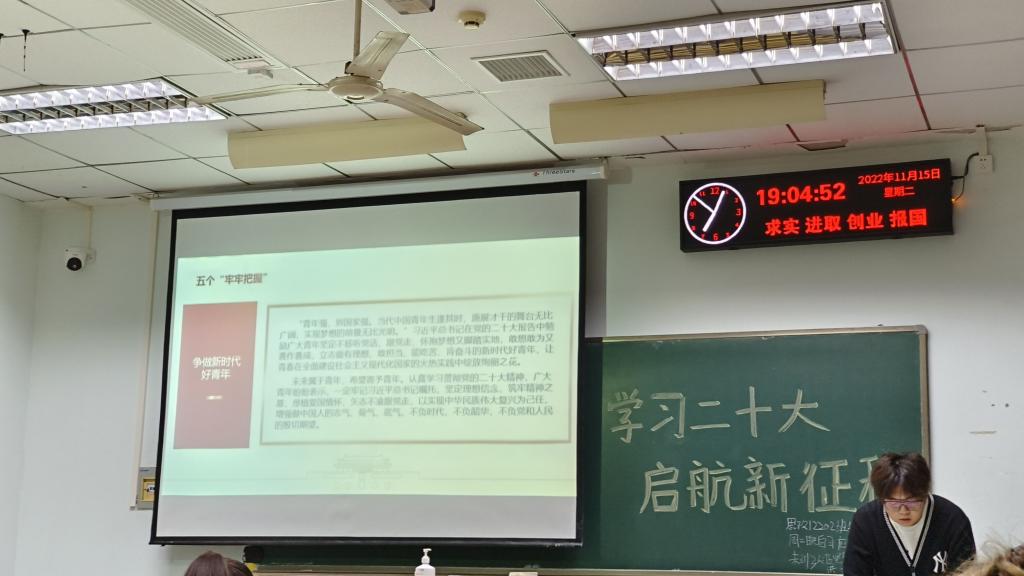 本次主题团会各支部采取线上与线下相结合的方式进行学习。22级两个支部从五个历史角度分析我们和我们的党为什么要牢牢把握过去5年工作和新时代10年伟大变革的重大意义,很大程度上加深了成员们对党的二十大精神的理解和感悟,并且主讲人还号召成员们要争做新时代好青年,在班级内形成了强烈共鸣。21级两个支部聚焦了习近平总书记在革命圣地的讲话,带领成员们再次回顾、感受延安精神。主讲人对习近平总书记的指示做出了详细的阐述与说明,带领同学们剖析了习近平总书记的讲话重点,提醒同学们时刻坚定弘扬延安精神,站稳人民立场。21专硕支部通过奏唱中国共青团团歌的形式,激发员工的爱国情、强国志、报国行,引导大家树立远大理想和抱负,将实现个人价值的目标与时代奋进的目标结合起来,在不懈奋斗中实现人生价值。二学位支部的成员以视频的方式对劳动教育进行了特别学习,了解了铁人王进喜的生平事迹,告诉同学们热爱劳动,尊重劳动,树立新时代劳动价值观。