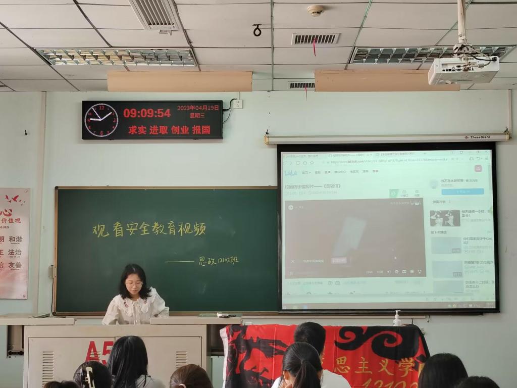 结合安全教育工作要求,各班级安全委员每天课前还播放了安全教育微视频,在班级QQ群进行典型安全事故案例分享,进一步增强班级同学的自我防护意识。