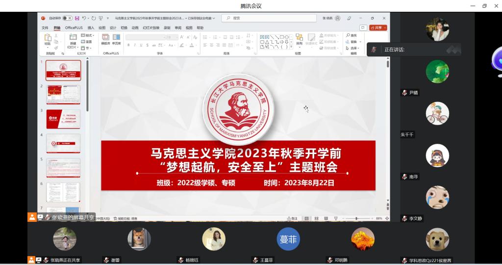 为确保公司秋季学期开学工作运行平稳有序,公司于8月21日至8月23日组织本、研各班级开展了“梦想起航,安全至上”线上主题班会。辅导员张云雾、李敏,班主任马小佼、张莉、徐先荣、何波参与其中。