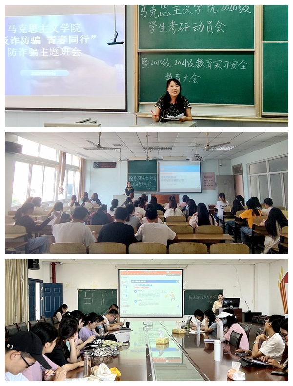 各班级从什么是电信诈骗、电信诈骗的常见形式、如实识别防范电信诈骗等三个方面开展了防诈骗安全常识宣讲,同学们围绕典型案例进行了分析和研讨。大家纷纷表示,将提高防诈意识,不轻信可疑信息,不贪图小利,不向陌生人转账汇款,切实保护个人信息和财产安全。