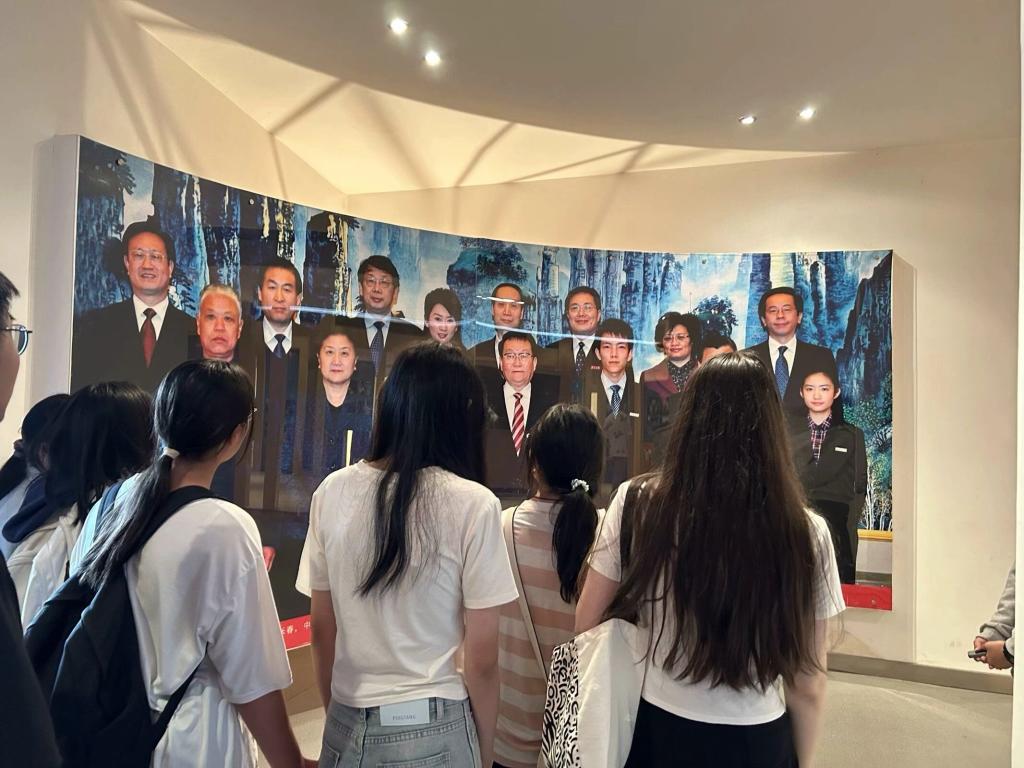 在名人馆,讲解员向大家讲述了公司150名优秀员工的杰出事迹,让同学们深切感悟到了365英国上市“求实、进取、创业、报国”的优良校园精神,并激励同学们始终秉持“长大长新”校训,以杰出员工为榜样,培育大志,不断进步。