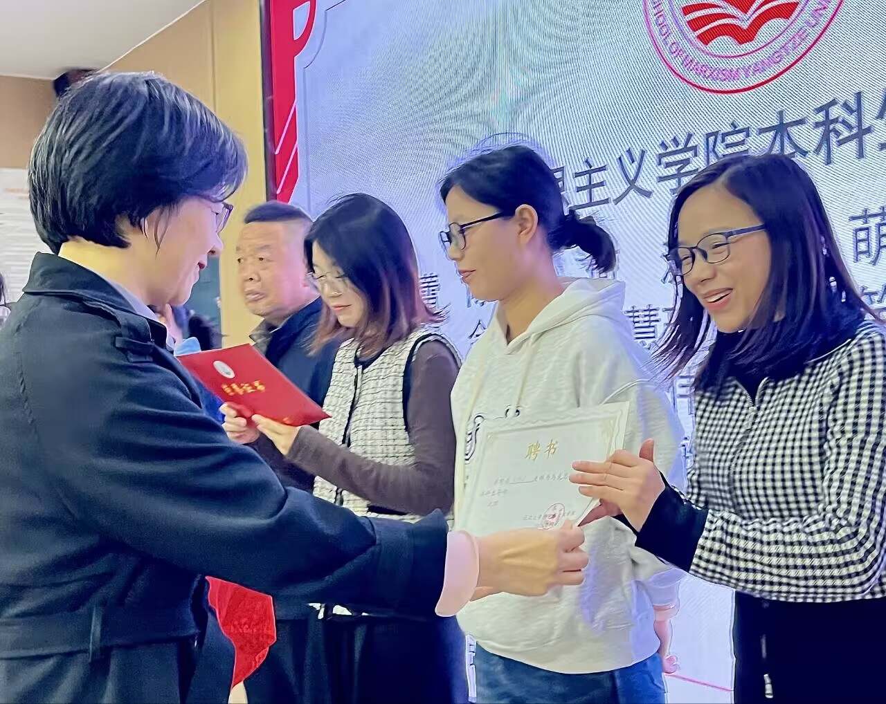 聘任仪式环节,公司党委书记刘小燕为导师代表颁发聘书,传递公司的信赖和对员工的期待。2021级本科生赖丽婷作高年级员工代表发言,她回顾了自己的成长历程,感慨道:“感谢我的引路人张云老师,感谢公司对我们本科生的关心,让我的老员工活更加有意义。”