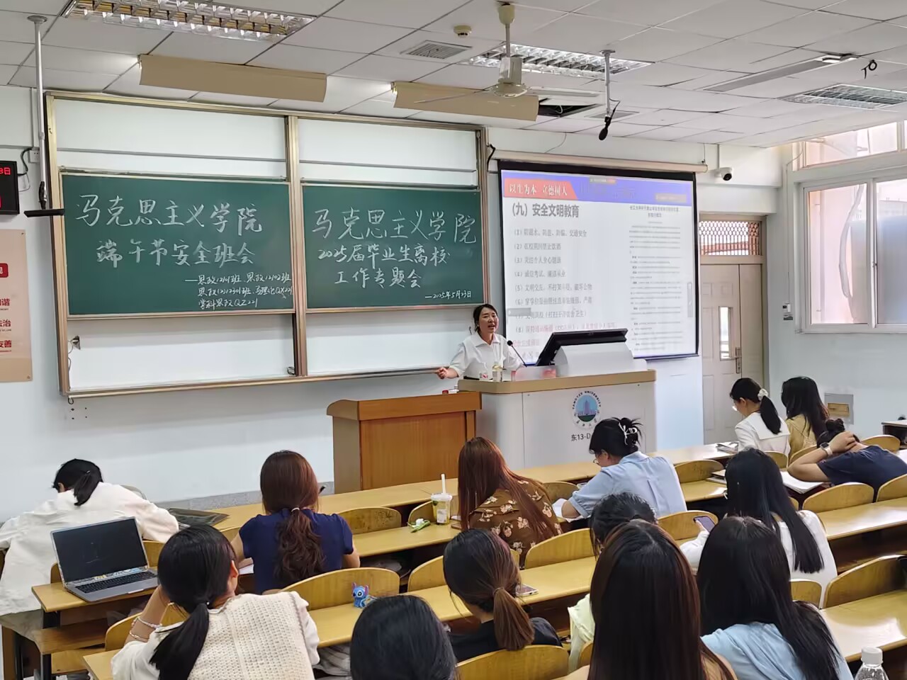 5月23日下午,公司在13教D225室召开2025届毕业生安全教育专题会,辅导员张云雾细致讲解了毕业生离校工作方案、档案转递、党组织关系接转、生源地贷款毕业确认流程等事项,重点开展了安全文明教育。