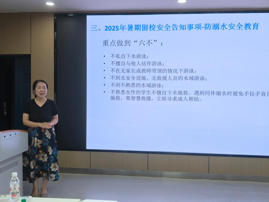 为规范员工暑假留校管理,公司还召开了留校员工安全教育专题会。辅导员张云雾强调了留校申请手续办理流程、假期留校员工管理要求,开展了防溺水和消防安全教育;副书记汤慧珍呼吁同学们合理安排假期时间,积极参与社会实践和有益的文体活动,不断提升自身综合素养。