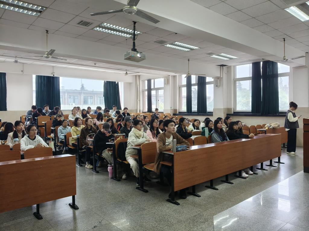 随后,冯星雨以“不忘初心,追光前行”为主题,分享了在湖北荆州、北京、济南、川渝等地的实践经历,回顾了个人成长与团队协调中的担当。她最后寄语:“每个人的花期不同,慢慢来是一种诚意,祝愿学弟学妹以热爱的方式绽放光彩”。
