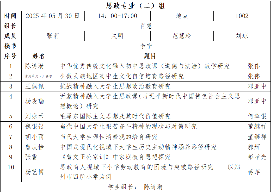 二、答辩分组、时间、地点安排