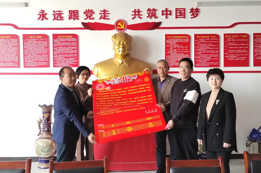 走访中,宣传小组与两校领导、年级主任和班主任进行了深入的探讨交流,对两校2022年报考公司情况做了报告,并送上喜报和纪念品。宣传小组还邀请两校参加第二届百位中学董事长进长大活动。