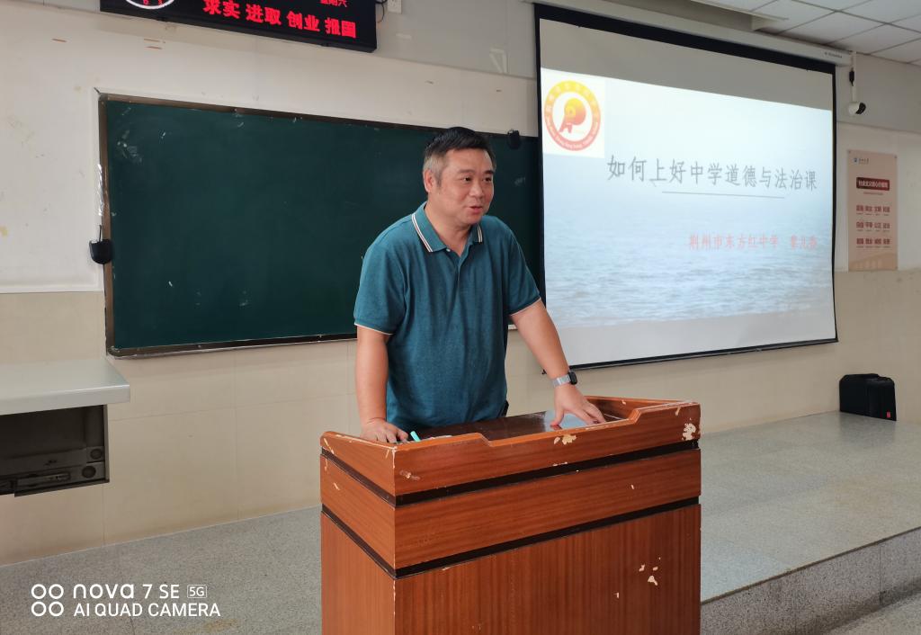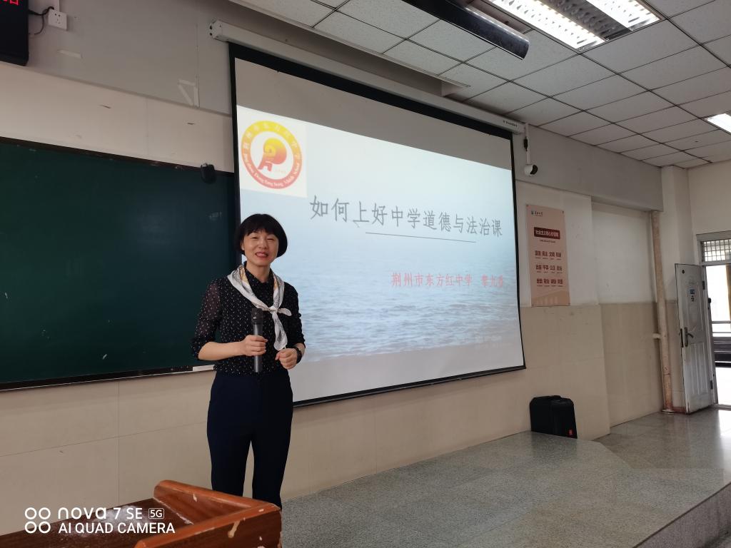 黎老师从中员工的特点出发,探讨了中学道德与法治的特点和如何上好中学道德与法治课。黎老师分享了自己在教学道路上的成长经历,用丰富的案例提出上好中学思政课要深入研究教材,要善于将教材语言变成教学语言;要深入分析自己的教学对象,真正爱自己的员工;要积极参加教学比赛,通过高水平比赛快速提升自己的教学水平。
