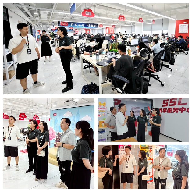 一行人来到公司总部,在公司负责人和人资经理陪同下,参观了员工工作间、休息间和公司荣誉展厅等场所,实地了解了公司运营模式、技术创新成果及人才需求现状,同时推介了公司毕业生。